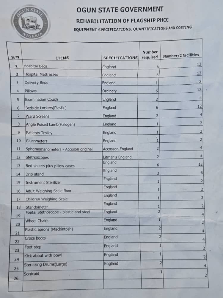 Speaking to newsmen in Abeokuta on Thursday, Honourable IWA shared his heartfelt appreciation for the ongoing support from the Ogun State Government in enhancing healthcare facilities across the state. He noted that the provision of these health equipment is a major step in the right direction, ensuring that quality healthcare services reach all corners of Ogun State.